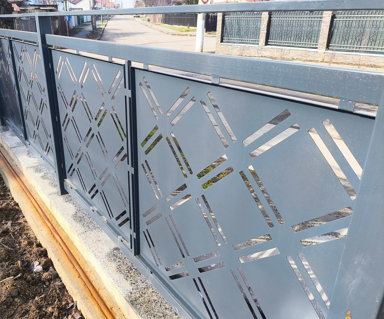 solut. Putem lucra direct cu fișierele tale (format DXF sau DWG) sau putem crea un design unic plecând de la o simplă fotografie. Tehnologia noastră CNC laser permite tăierea oricărei forme geometrice, organice sau chiar integrarea numelui străzii sau a numărului casei în panoul de gard.