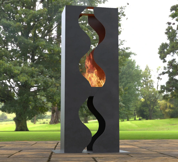 Șemineu de grădină „Val” — design fluid și elegant pentru atmosfera ta outdoor, combinând căldura focului cu un punct central estetic în grădină sau pe terasă.